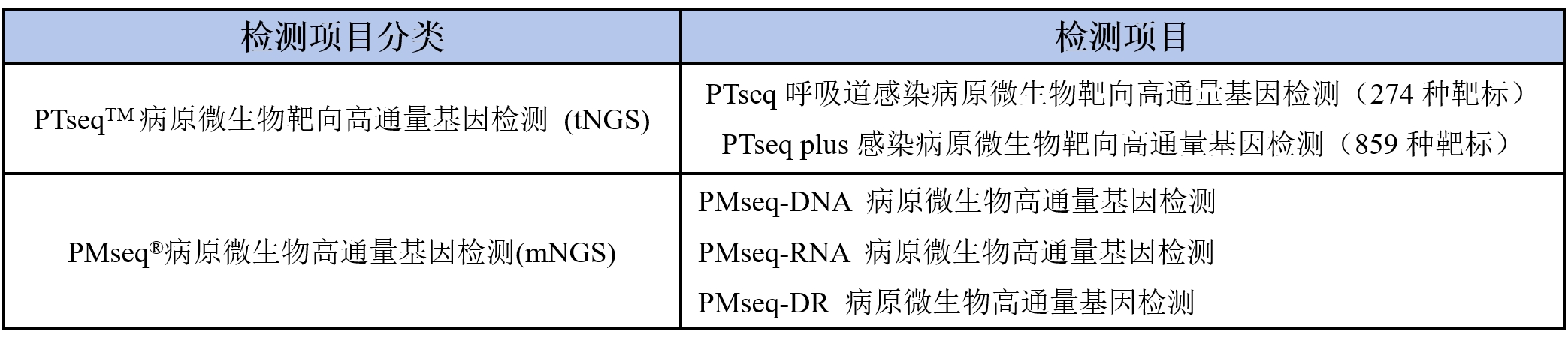 TM病原微生物高通量基因检测(mNGS)服务。具体检测项目详见下表:
