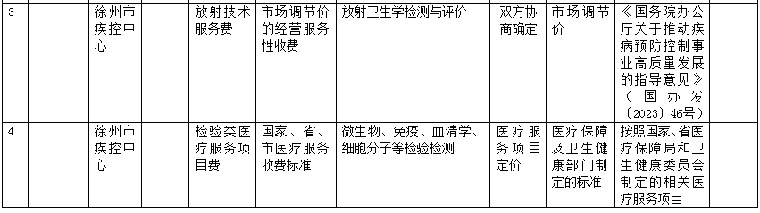 徐州市疾病预防控制中心综合性涉企收费和对外服务目录清单