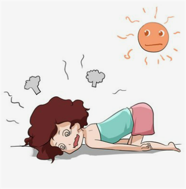 中暑先兆:在高温环境下活动一段时间后,出现乏力、大量出汗、口渴、头痛、头晕、眼花、耳鸣、恶心、胸闷、体温正常或略高。