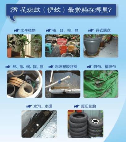 伊蚊喜欢在人类家中和附近栖息。为了减少孳生,我们应该采用多种手段清除孳生场所: