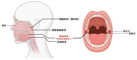 注意,是侧面(如下图),扁桃体炎和咽炎并不是指同一件事,但两者都会出现咽痛,且可能由于同一种病原体的感染而同时发生。
