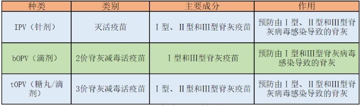 脊灰病毒有3个血清型,彼此无交叉免疫,依此划分的Ⅰ型、Ⅱ型和Ⅲ型。徐州市使用过的脊灰疫苗有以下3种: