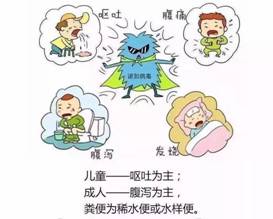 诺如病毒感染的潜伏期通常为24~48小时,最短12小时,最长72小时。诺如病毒胃肠炎一般以轻症为主,最常见症状是呕吐和腹泻,其次为恶心、腹痛、头痛、发热、畏寒和肌肉酸痛等。成人和儿童诺如病毒急性胃肠炎症状有所区别,儿童以呕吐为主,成人则以腹泻居多。诺如病毒胃肠炎一般为急性起病,属于自限性疾病,多数患者发病后2~3天即可康复。但对于婴幼儿、老人,特别是伴有基础性疾病的老人,诺如病毒胃肠炎可导致脱水等较严重的症状。