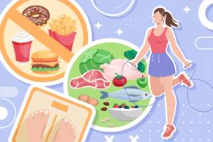√ 少吃猪牛羊等脂肪含量较高的红肉,可用鸡肉、鱼肉等白肉代替。还应改掉暴饮暴食、爱吃零食等习惯。
