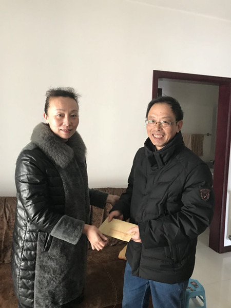 2月12日上午,中心纪委书记娄江波、政工科科长孟杰来到援疆干部孙建胜家中进行走访慰问,转达了市委市政府、市委组织部、市卫计委党委和中心领导的新春祝福,并送去了慰问金。交谈中,娄江波同志详细询问了孙建胜同志在新疆的工作生活情况,对他舍小家顾大家,全身心投入对口支援工作的精神表示赞扬。同时,对他的家属独自承担家庭事务,克服诸多困难,全力支持援疆工作表示真诚地感谢。孙建胜同志表示,感谢组织的关心和照顾,节后返回新疆后,将一如既往地努力工作,不辜负组织的期许。