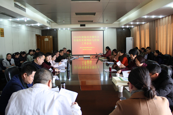 会议由市疾控中心慢病科科长娄培安主持,市疾控中心主任助理常桂秋出席会议并讲话。常主任指出2017年在各县区共同努力下,全市慢病条线工作得到有效推进,死因、肿瘤、心脑血管事件工作质量有所提升,全民健康生活方式行动工作成效显著,2017年6月,徐州市承办的以“倡导健康生活方式,共建共享健康江苏 ”为主题的江苏省全民健康健步走大联动暨全民健康生活方式第二阶段行动启动仪式得到省级的肯定;市疾控中心组织辖区报送的的科普宣传作品获得了可喜的成绩。常主任在对2017年慢病工作肯定的同时,要求各地再接再厉,统筹安排2018年工作,夯实工作基础,继续提高慢病监测工作质量,落实慢病生活方式行动,并以基本公共卫生服务项目为平台,以慢性非传染性疾病综合防控示范区创建为抓手,以实施全民健康生活方式行动工作为推动,全面落实慢性病防控的各项工作,同时兼顾项目工作,做好能力建设和科研工作。邳州市、泉山区、睢宁县就2017年度慢病防制工作经验和体会进行了介绍,为全市其他县区工作的开展提供了宝贵的借鉴思路。