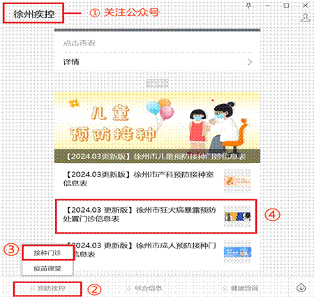 露后预防处置。我市狂犬病暴露预防处置门诊信息可以关注徐州疾控微信公众号,在“预防接种”模块查询。