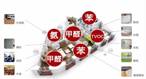 (2)室内总挥发性有机物主要为苯、甲苯和二甲苯,一般来自乳胶漆、油漆等材料,苯系物可损害人体的呼吸、神经及血液系统,甚至增加癌症发生的可能;