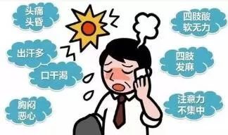 中暑发生前一般会出现中暑先兆。中暑先兆指在高温作业环境下工作一定时间后,出现头晕、头痛、乏力、口渴、多汗、心悸、注意力不集中、动作不协调等症状,体温正常或略有升高但低于38.0 ℃,可伴有面色潮红、皮肤灼热等,短时间休息后症状即可消失。