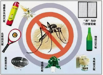 居民家中,要做到生活垃圾袋装化,日产日清;装纱门纱窗,防止蚊虫入户。家中保持干净卫生,及时清除各类容易孳生蚊幼的水体(如阳台的水盆景、收集水桶、拖把池等)。使用蚊帐,结合灭蚊拍灭蚊;傍晚或天黑可在家门口或过道周围点盘式蚊香驱蚊;也可以使用灭蚊窗纱涂剂,驱杀停歇在纱窗上的蚊子;蚊虫若进入室内较多,可关闭门窗使用杀虫气雾剂高浓度处理30min(人员暂离)后将其杀灭;也可在通风状态下,睡前半小时使用电热蚊香片或电热蚊香液驱蚊,防止蚊虫叮咬。