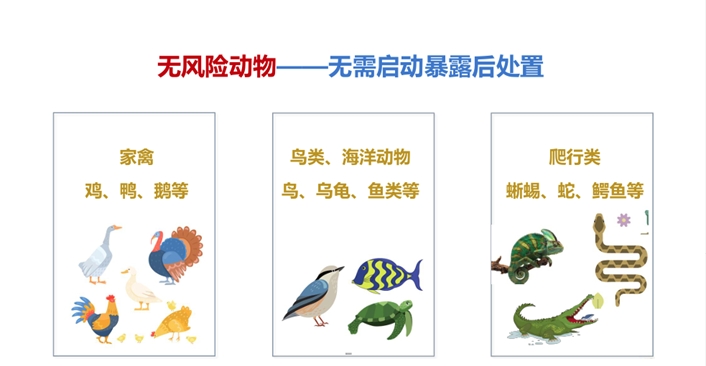 (2)疫苗接种:再次暴露发生在免疫接种过程中,应继续按照原有免疫程序完成剩余剂次的接种:全程接种后3个月内再次暴露者一般不需要加强接种;全程接种后3个月及以上再次暴露者,应于0、3天各加强接种1剂次狂犬病疫苗。