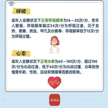 ●成年人安静状态下正常呼吸频率为 16~20次/分,老年人略慢;呼吸频率超过24次/分为呼吸过速,见于发热、疼痛、贫血、甲亢及心衰等;呼吸频率低于12 次/分为呼吸过缓。