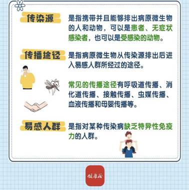 传染病是指病原微生物感染人体后产生的、有传染性且在一定条件下可造成流行的疾病。传染病可在人与人、动物与人之间传播。传染病的流行必须具备三个环节:传染源、传播途径和易感人群。