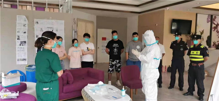 8月6日,赶到南京报到,经过系统培训后随即进入江宁区丽枫隔离点驻点。到达后立即对驻点医务、酒店人员进行防护服穿脱、消毒剂浓度配置等相关知识培训,同时对其余15家隔离点进行线上指导、培训、督导。他说:“能快一点对他们防护培训,就能早一步减少他们被病毒感染的风险” 。完成当天工作后,还要梳理其他隔离点存在的问题,提出合理化建议,一直忙到深夜。