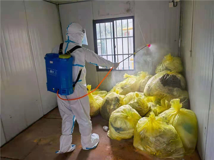 参与驻点消杀工作后,还通过微信和电话等对其他隔离点进行督导。由于地区差异,语言沟通不是那么顺畅,又因为不是在现场督导,看不到真实情况,好多环节需要一遍又一遍核实,反复嘱咐他们注意安全,做好个人防护。每一次线上督导下来,他嗓子都会冒烟。