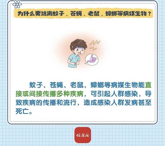 蚊子、苍蝇、老鼠、蟑螂等病媒生物能直接或间接传播多种疾病,可引起人群感染,导致疾病的传播和流行,造成感染人群发病甚至死亡。