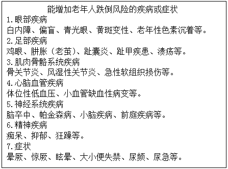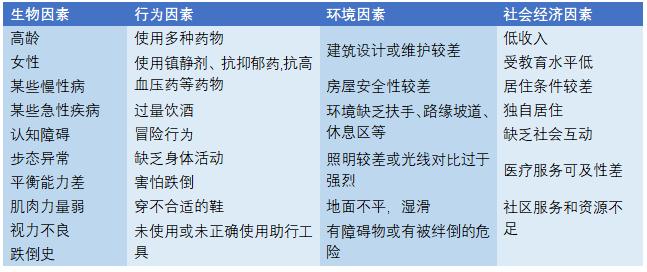 这是因为老年人跌倒的危险因素包括生物因素、行为因素、环境因素和社会经济因素四个方面。老年人跌倒的发生通常不是单一因素的作用而是多个因素共同作用的结果。老年人拥有的跌倒危险因素越多,跌倒风险越高。