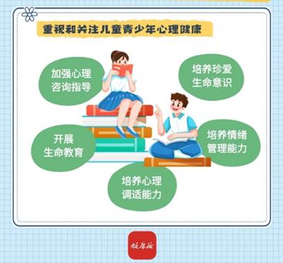 重视和关注儿童青少年心理健康,开展生命教育,加强心理咨询指导,培养儿童青少年珍爱生命意识和情绪管理与心理调适能力。需要心理咨询时可通过拨打当地 12345、12355、12320 等热线电话寻求帮助。