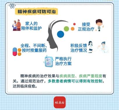 精神疾病可防可治,不要觉得难为情或耻辱。家人的陪伴和监护对于精神疾病患者的康复非常重要。一旦被确诊患有精神疾病,应尽快让患者接受正规治疗,监督患者遵照医嘱全程、不间断、按时按量服药。严格执行治疗方案,积极向医生反馈治疗情况。精神疾病的治疗效果与疾病类型、疾病严重程度有关。通过规范治疗,多数患者病情可以得到有效控制,达到临床痊愈。