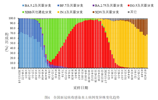 此外,该报告还显示,当前我国流行的新冠病毒主要有JN.1和XDV变异株,其中XDV及亚分支占比约有三成。