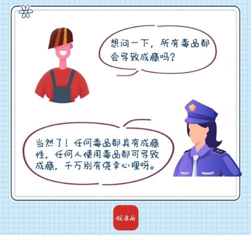 任何毒品都具有成瘾性,任何人使用毒品都可导致成瘾。毒品成瘾是一种具有高复发性的慢性脑疾病,其特点是对毒品产生一种强烈的心理渴求和强迫性、冲动性、不顾后果的用药行为。