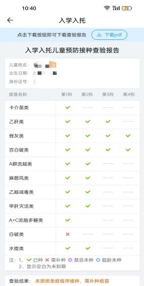 下载安装“江苏预防接种”app,打开软件依次点击儿童疫苗-绑定受种者档案-入学入托-儿童预防接种查验报告-下载pdf(详细步骤见下图)。