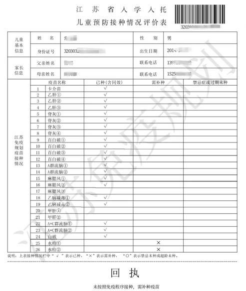 儿童在办理新入托、入园、入学和转学报到时,携带“儿童预防接种证/儿童预防接种情况评价表”。园医/校医在儿童开学或转学1个月内,对儿童的预防接种情况进行查验,发现漏种后,会及时向儿童家长发出漏种及补种通知。