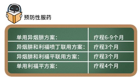 目前推荐的有4种方案,分别为3个月异烟肼、利福平联合方案;3个月异烟肼、利福喷丁联合间歇方案;6-9个月单用异烟肼每日方案;4个月单用利福平方案。