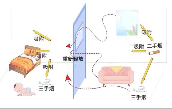 事实却是:虽然这样在一定程度上减少了二手烟对家人的危害,但不可忽视的三手烟依然摧残着家人的健康。“三手烟”是指吸烟者“吞云吐雾”后残留在衣物、墙壁、地毯、窗帘、皮革、家具,甚至头发和皮肤等表面的烟草残留物。残留物中含有尼古丁、致癌物、重金属、放射性物质等有害物质。三手烟在室内停留的时间相当长,卷烟熄灭后6小时它们依然存在,还会随着时间的推移而累积。