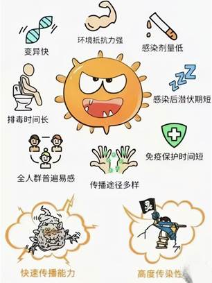 传染性强:诺如病毒只需极少的病毒量就可以传染,而一个人感染后,一次能排出数十亿个病毒粒子。