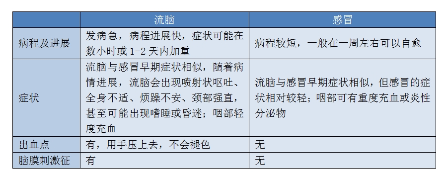 流脑潜伏期1-10天,一般为2-3天,冬春季高发。主要临床表现为突发高热,剧烈头痛,频繁呕吐,脑膜刺激征,皮肤、黏膜出现瘀点(斑),瘀斑可迅速扩大融合成片。婴幼儿可见前囟隆起,重症患者可有不同程度的意识障碍和(或)感染中毒性休克,严重者可有败血症休克和脑实质损害,常可危及生命。