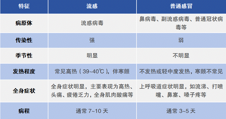 流感和普通感冒虽然都是呼吸道疾病,但两者是完全不同的。下表列出了流感和普通感冒区别: