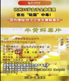 砒霜(三氧化二砷) 雄黄(四硫化四砷)