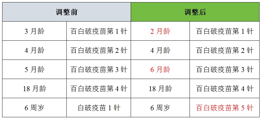 二、百白破疫苗接种程序调整?