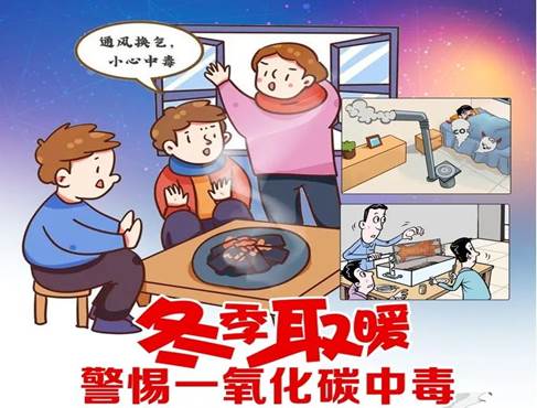 秋冬季节,气温骤降,取暖设备使用频繁,在密闭或通风不良的环境中,煤炭、木材、天然气等燃料在不完全燃烧的状态下会生成大量一氧化碳。