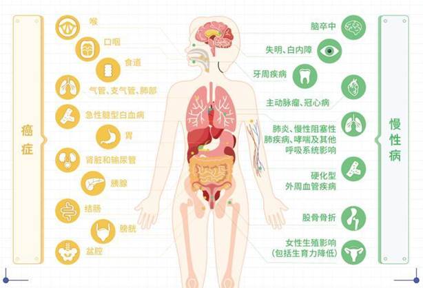 吸烟严重损害健康并增加癌症和慢性病的发生风险。开始吸烟的年龄越早,患病风险越高。