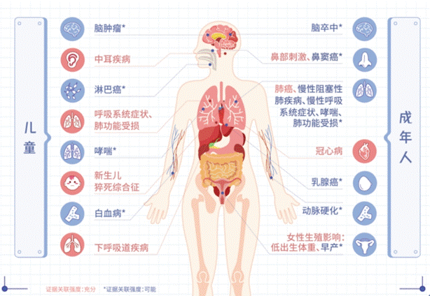 吸烟者不仅自己遭受烟草的危害,也会给身边的人带来健康危害。二手烟可以导致癌症、肺部疾病、心脑血管疾病等。儿童更容易受到二手烟的影响。