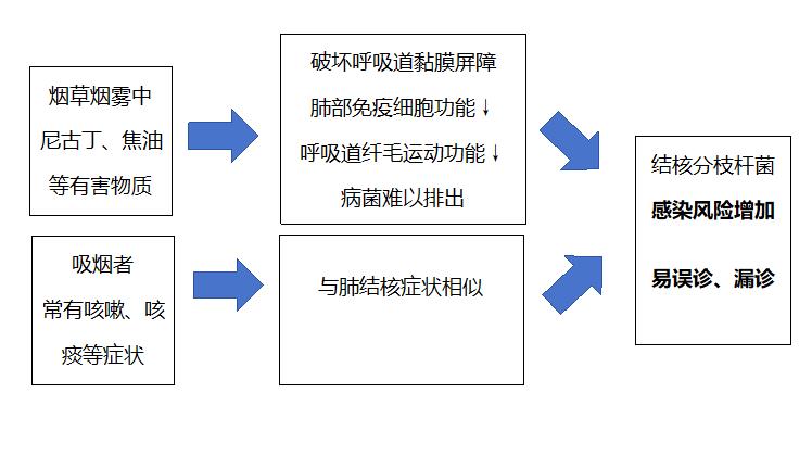 相关研究表明,有吸烟史者结核病治疗无效(临床症状无改善或改善不明显)的风险是非吸烟者的6.28倍[3]。