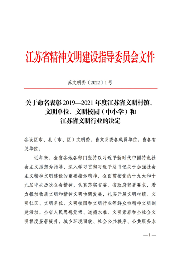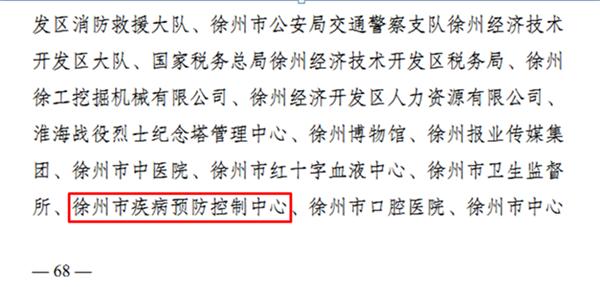 精神文明建设结硕果,在近期揭晓的江苏省文明单位评选中,徐州市疾病预防控制中心荣获“2019-2021年度江苏省文明单位”称号,这标志着中心精神文明创建工作再上新台阶。