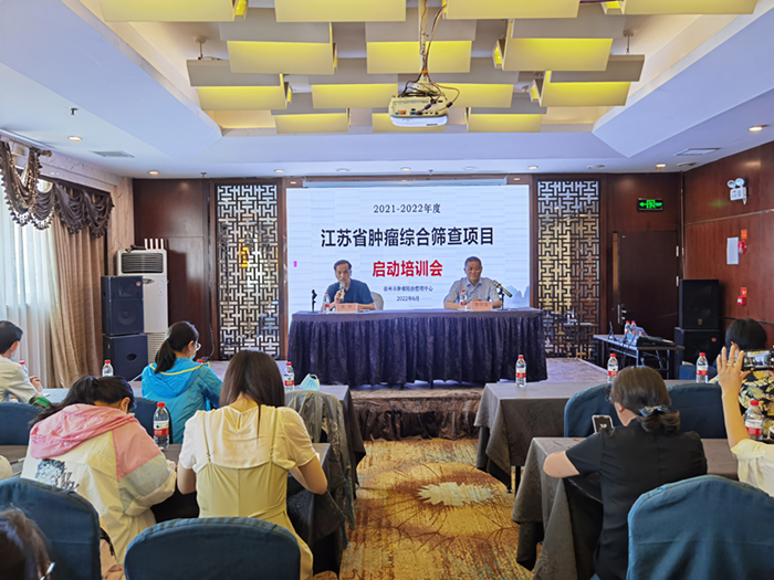为进一步做好江苏省肿瘤综合筛查工作,确证项目实施效果,根据江苏省癌症中心《肿瘤综合筛查项目技术方案》要求,市疾控中心于2022年6月15日在徐州市锦江都城酒店召开2021-2022年度江苏省肿瘤综合筛查项目工作启 动暨培训会议。市疾控中心、市肿瘤医院项目相关人员,各相关县、市(区)疾控中心分管主任、慢病科长以及承担项目的社区卫生服务中心工作负责人参加了此次会议。