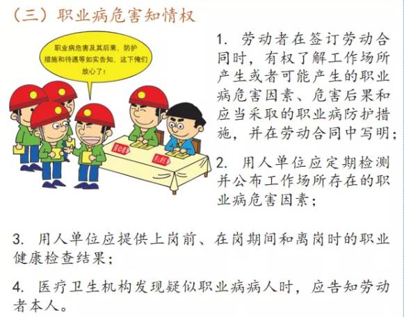 (三)了解工作场所产生或者可能产生的职业病危害因素、危害后果和应当采取的职业病防护措施;