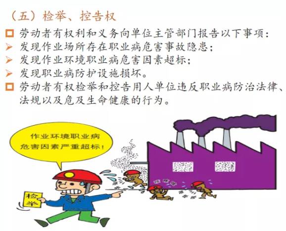 (五)对违反职业病防治法律、法规以及危及生命健康的行为提出批评、检举和控告;