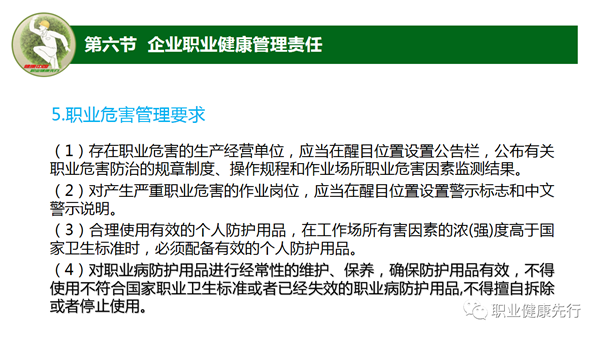 我国将每年4月的最后一周至5月1日国际劳动节(4月25日至5月1日)定为全国《职业病防治法》宣传周。