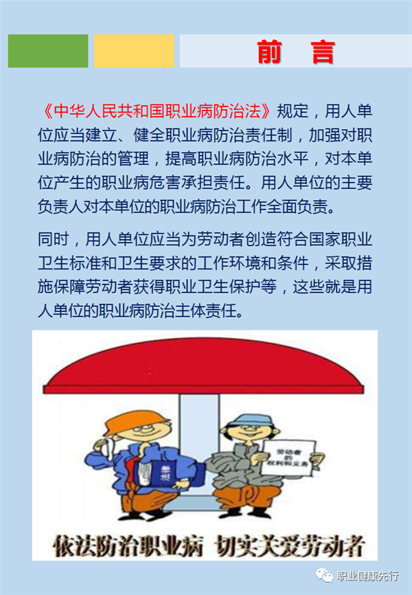 宣传手册:《职业病防治法》解读之一:用人单位职业病防治主体责任