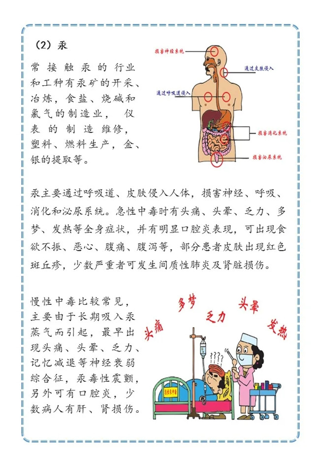 3. 职业性化学中毒。有铅及其化合物中毒、汞及其化合物中毒等。