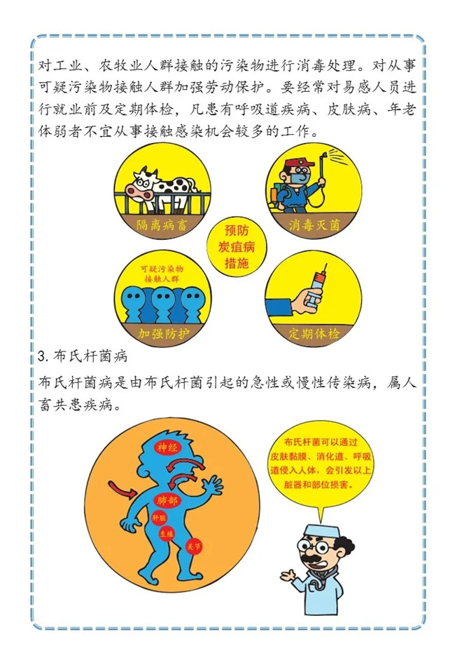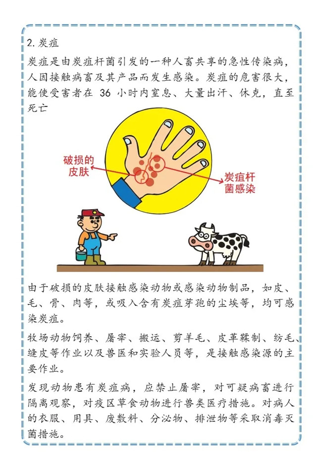 5. 职业性传染病。有炭疽、森林脑炎等。