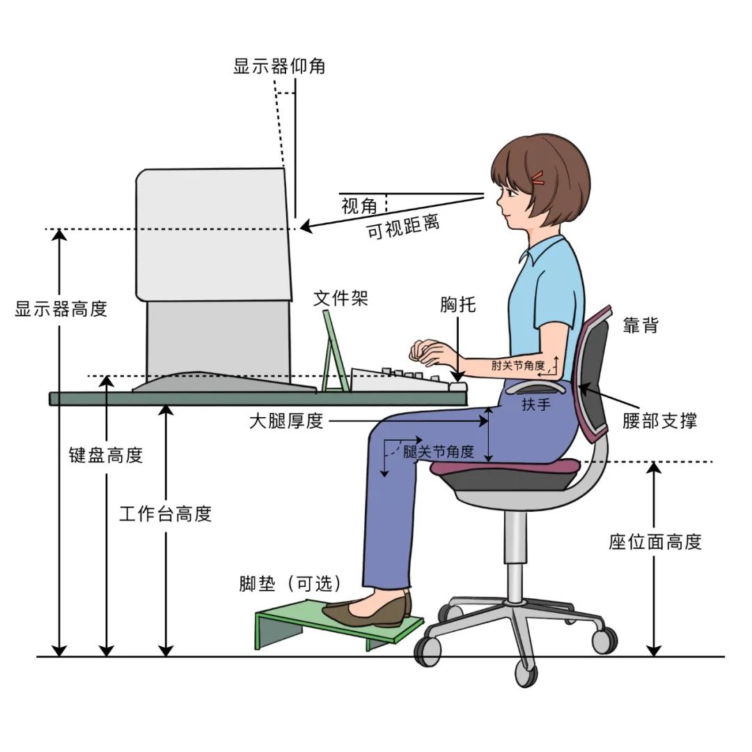 1、保持良好的坐姿是关键!挺直腰杆,头部和腰背保持一条直线,千万不要含胸,打开胸腔,肩膀下沉,伸直脊柱使上身的重心落在坐骨上,保持腰部和腹部一定程度的收紧,以保持脊柱的姿势。双脚自然平放,切忌二郎腿哦。