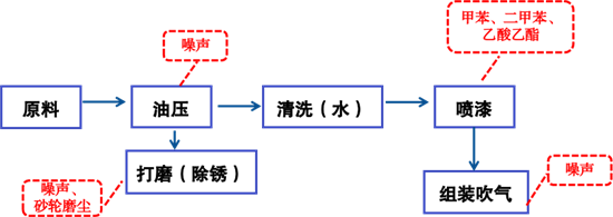 2022年7月,接到市民举报,反映某公司喷漆车间与生产车间未分开,导致生产车间空气中有非常重的油漆味及灰尘。上海市松江区卫健委监督所接报后,立即对该公司开展监督检查;调查发现该公司主要从事微特电机及组件制造,生产工艺流程及接触到的职业病危害因素见下图(该工艺图来自用人单位年度检测报告)。