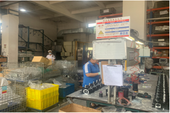 1. 现场查见该公司生产车间组装吹气操作位劳动者正在操作中,未佩戴耳塞,涉及到的职业病危害因素为噪声;