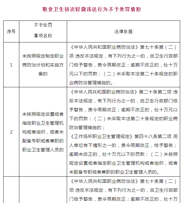 职业卫生分类监督执法:职业卫生初次轻微违法行为不予处罚情形